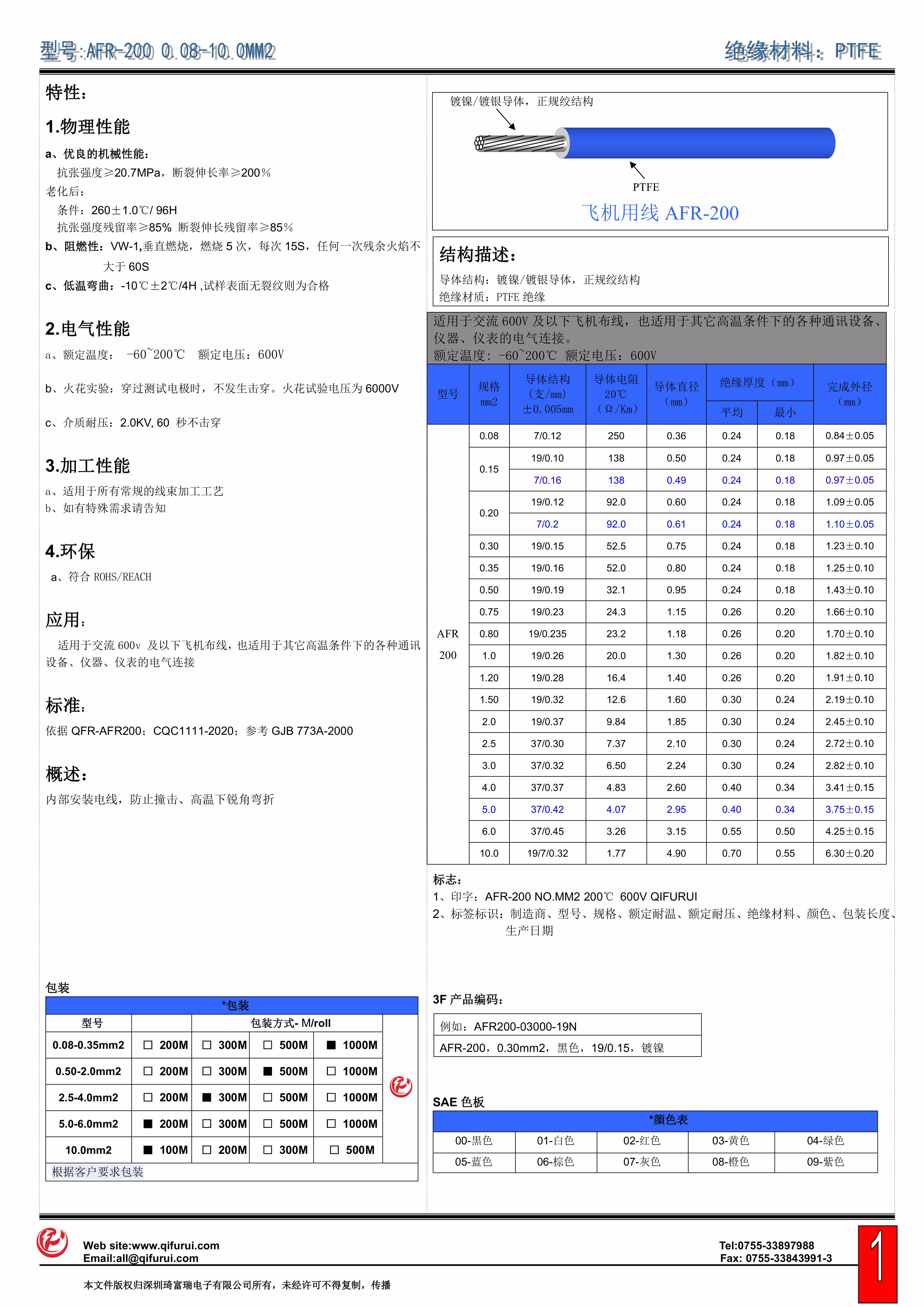飛機(jī)用線 聚四氟乙烯AFR-200